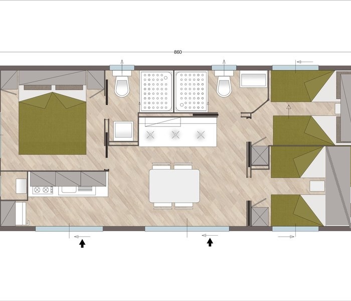 4+2 persone, pulizie iniziali e finali, 1 ombrellone e 2 lettini in spiaggia con lo stesso numero della casa mobile, luce, acqua, gas, aria condizionata, coperte, lenzuola e biancheria da bagno con cambio settimanale, un posto auto, animazione, TV SAT.